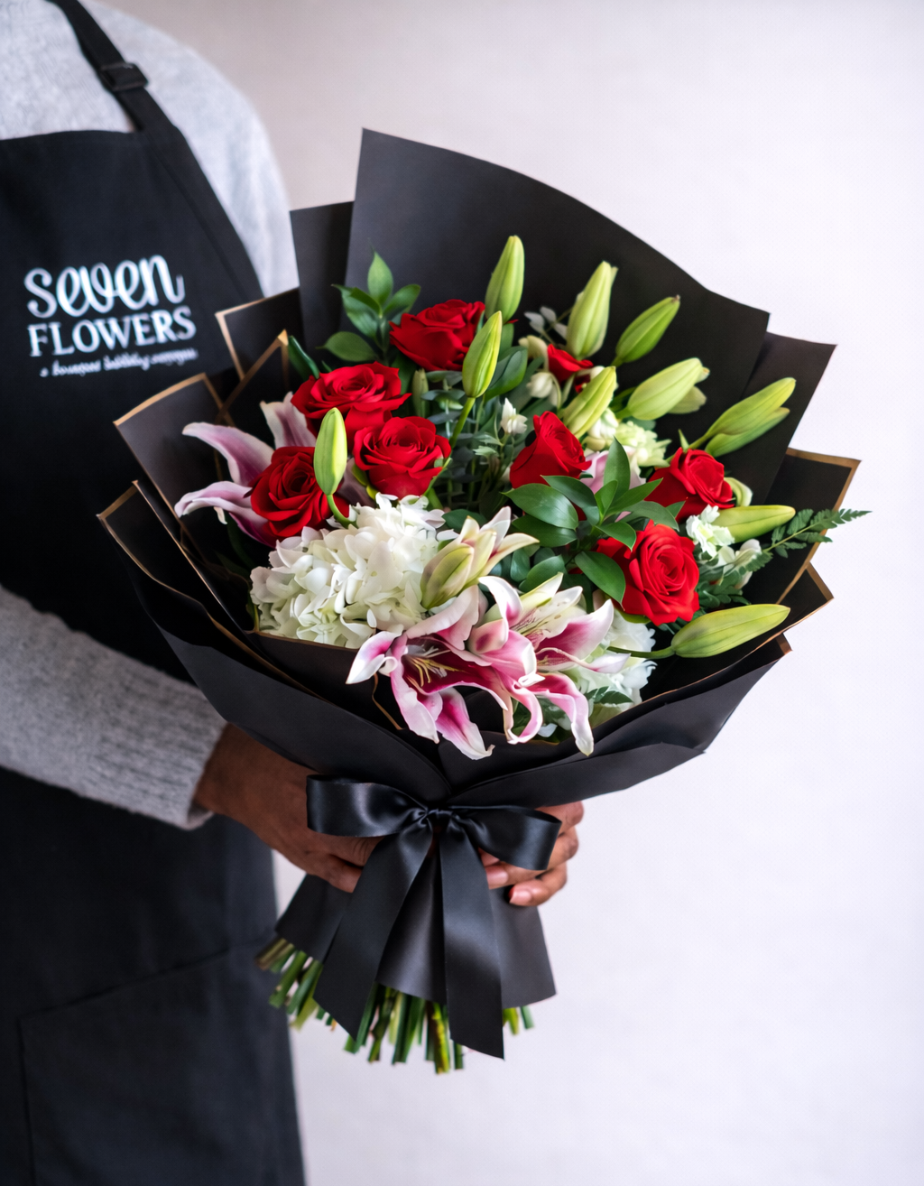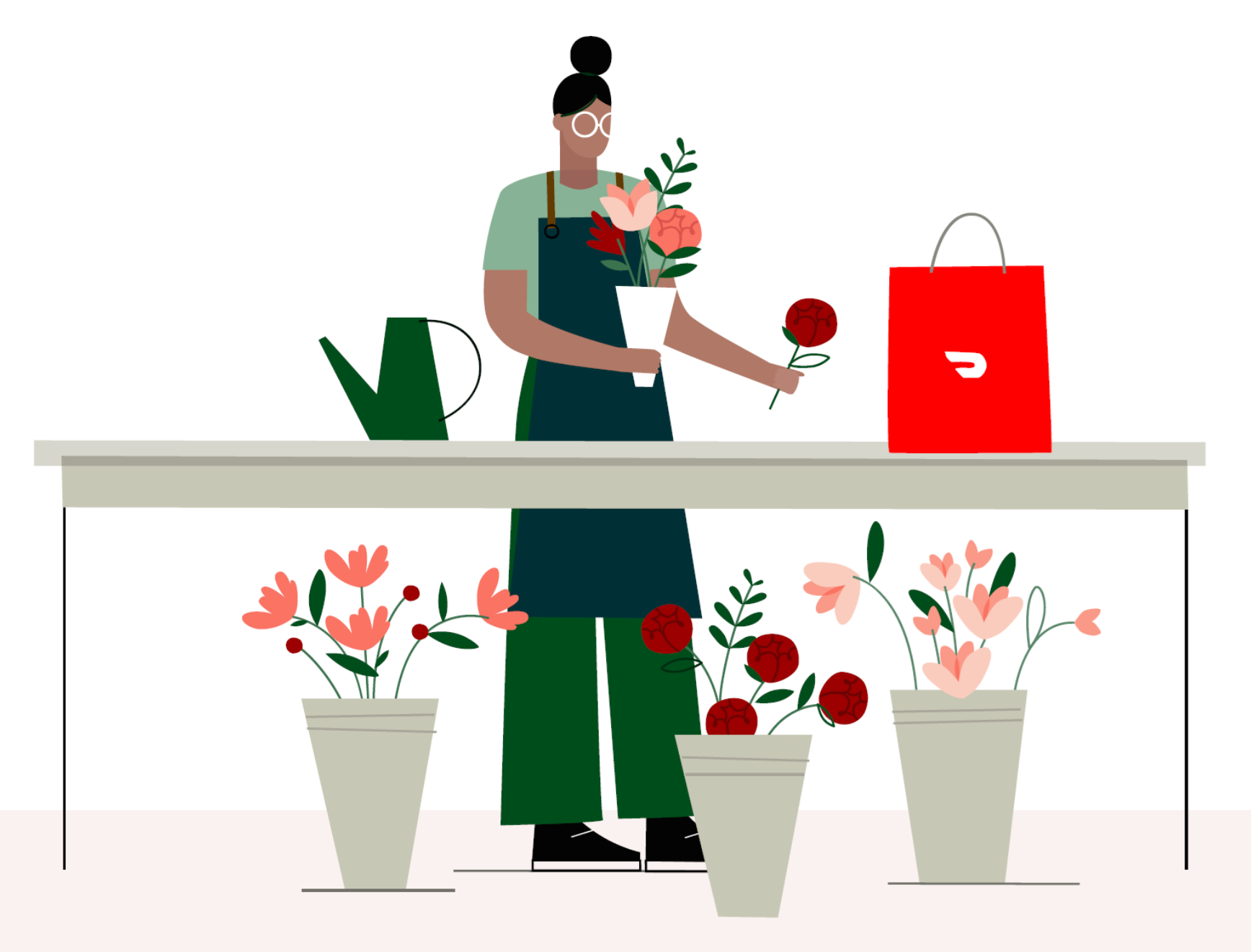Every arrangement is handcrafted by our professional designers at Seven Flowers. DoorDash is simply the ordering and delivery platform.